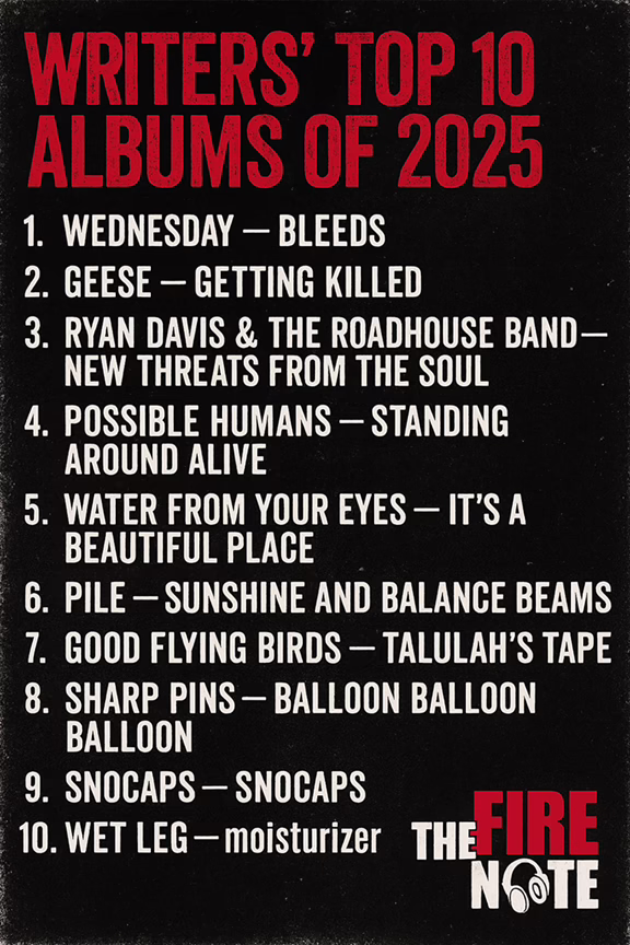 At The Fire Note, our writers are the spark behind every review, premiere, and hidden gem we feature. Their curiosity, their deep listening, and their love for championing great music make the Writers’ Top 25 one of our favorite traditions. We even bring a few retired voices back into the fold — once TFN, always TFN.