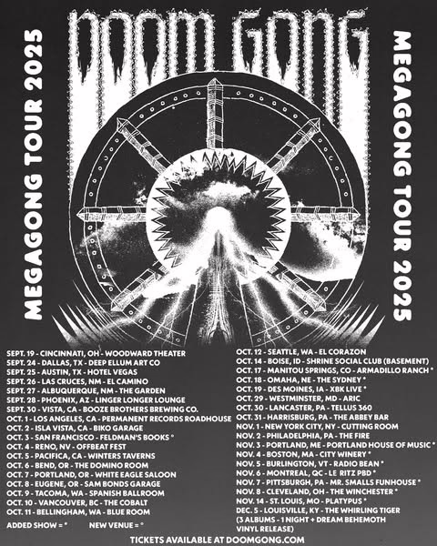 DOOM GONG have unleashed MEGAGONG, their third and most audacious record yet. Dropping digitally on August 26, 2025, and finally hitting vinyl this Saturday, September 27 at 3PM EST, the seven-piece wrecking crew takes their “Denim Psych” madness to new dimensions.